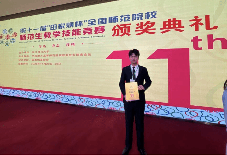 “田家炳杯”全国师范院校师范生教学技能竞赛是由田家炳基金会支持、全国地方高等师范院校教务处长联席会议专业指导的全国性高水平赛事,是国内师范教育领域规模最大、层次最高、影响力最广的师范生专业权威赛事。赛事等级高、晋级难度大,具有极高的含金量。本届赛事从2025年9月中旬开始,历经初赛、决赛两个阶段,至11月30日闭幕。