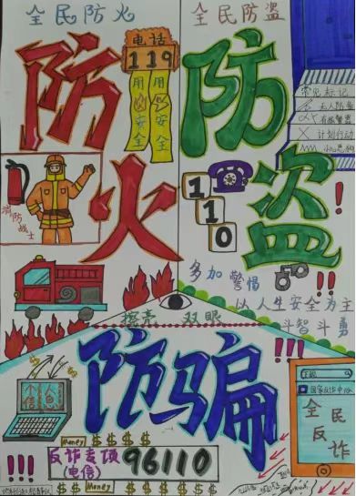 海报是一种信息传递艺术,参赛者结合自身创意和独特构想提笔落墨,将安全知识描在每一笔色彩里,绘在每一个字符里。用同学们喜闻乐见的形式,普及防火、防骗、防盗知识,增强防火、防骗、防盗意识,构筑坚实思想防线,使每一份海报都承担着安全教育的重任,让同学们在欣赏海报的同时,关注消防安全,学习防诈防骗知识,维护自身财产安全。