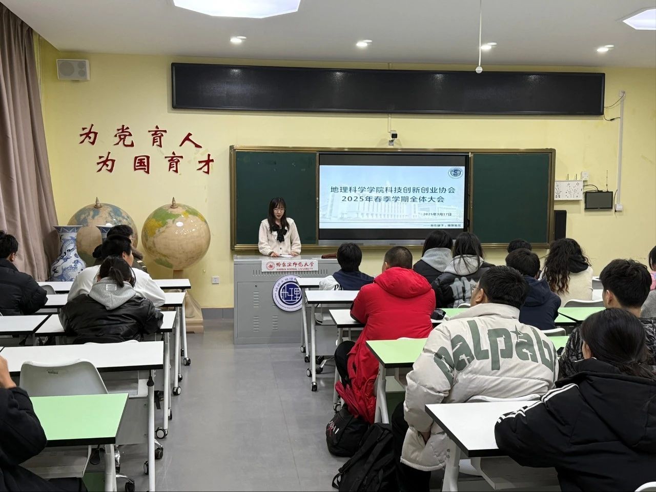 为推动学院科技创新创业协会新学期日常工作与重点工作的科学有序开展,确保工作方向明确且成效显著,2025年3月17日,地理科学学院科技创新创业协会在理工三号楼215室召开2025年春季学期第一次全体会议,会长马婧鑫主持会议,指导教师李昀东、科协全体成员及学院研究生会科创部全体成员参加会议。