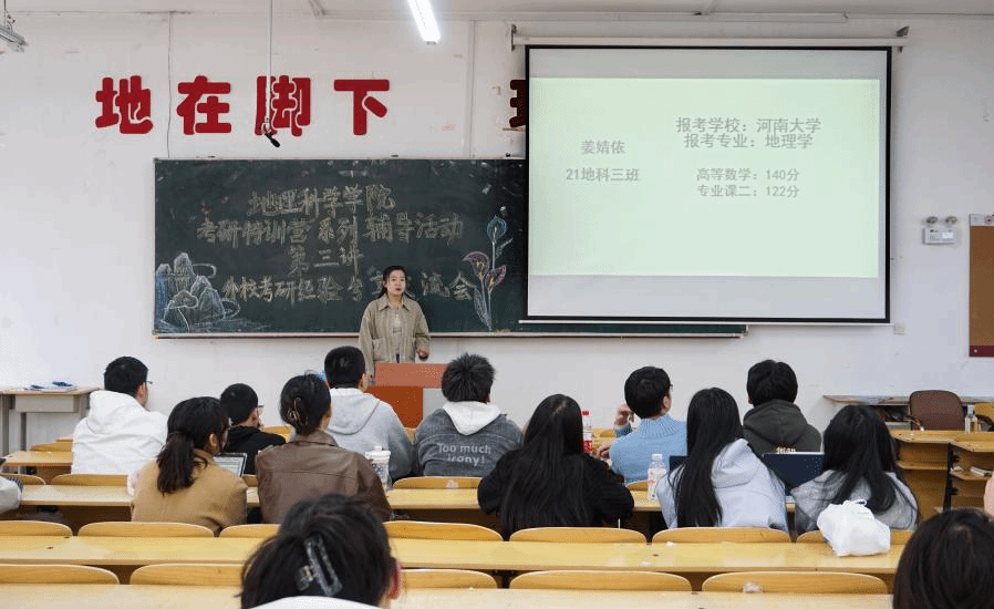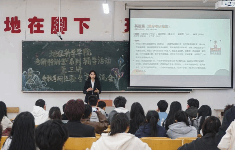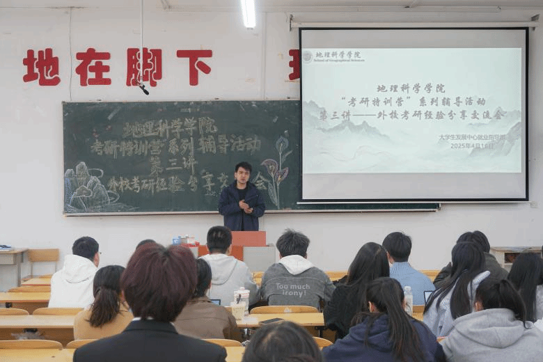 为精准赋能2026届考研学子,破解备考信息差、提升实战应战能力、充分发挥“传帮带”作用,助力我院学子科学规划复习路径、掌握外校研招动态。地理科学学院于4月16日在理工三号楼122室举办“考研特训营”系列辅导活动第三讲——外校考研经验分享交流会。本次活动由地理科学学院2022级辅导员李昀东主持会议,2022级计划报考外校研究生的学生参加。