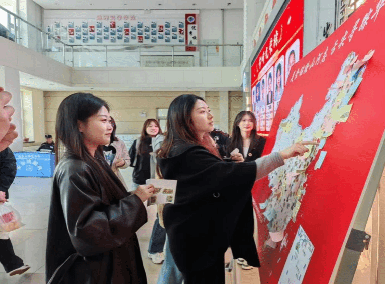 活动现场氛围热烈非凡,往来上课的同学无不为琳琅满目的美食贴纸所吸引,老师们也踊跃参与其中。一枚枚制作精美的美食贴纸,承载着不同地域的特色美食与动人文化故事。参与者们仔细挑选心仪的贴纸,郑重粘贴在中国地图背景板上,并用心写下对美食所在地的理解感悟和推荐理由。有人钟情于四川火锅的热辣滚烫,在贴纸旁抒发对麻辣鲜香滋味的无尽向往;有人则沉醉于江南小吃的精巧雅致,字里行间满是对细腻口感的由衷赞美。众人齐心协力,一幅鲜活生动的美食地图徐徐铺展眼前,祖国的每一寸土地都被赋予独特的美食文化印记,仿佛带领大家跨越千山万水,领略地道纯粹的中华风味。