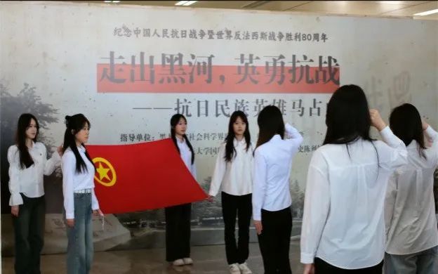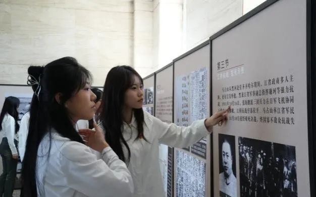 铭记烽火硝烟史,凝聚初心使命坚。为引导我院学生坚定理想信念、传承红色基因、厚植家国情怀,深刻感悟抗战英雄的伟大精神,树立正确的历史观与价值观,在“五四运动”106 周年暨中国人民抗日战争胜利 80 周年之际,地理科学学院团委组织青年学生代表于行知楼一楼参观“走出黑河,英勇抗战——抗日民族英雄马占山”事迹展览,在历史的画卷中汲取奋进力量,续写新时代青年的担当篇章。地理科学学院学生在参观“走出黑河,英勇抗战——抗日民族英雄马占山”事迹展览后感悟颇深,纷纷发表心得体会,立鸿鹄志,学习英雄模范。