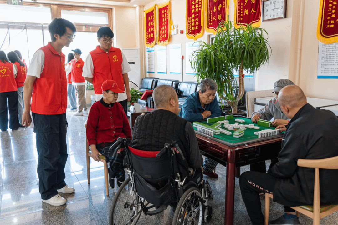 走进活动室,志愿者们围坐在老人身旁,以亲切的话语叩开心扉,倾听岁月沉淀的故事,分享生活中的趣事,欢声笑语融化了时光的寂静。活动临近结束,志愿者询问老人需求,推着老人缓步回到房间,用细致入微的关怀为这场温暖的相聚画下完美的句点。