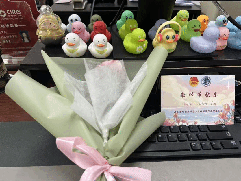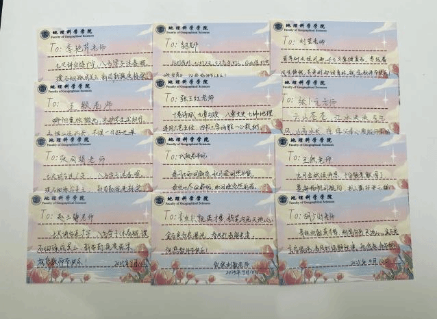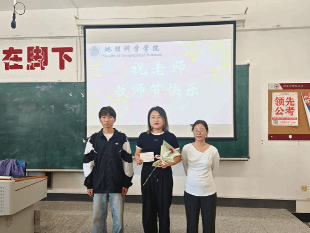 新竹高于旧竹枝,全凭老干为扶持。地理学子将满腔祝福倾注在一张张精心绘制的贺卡之中。这些贺卡不仅承载着数不清的师生情谊,更传递出莘莘学子发自肺腑的感恩之心。怀中一束束的鲜花,既代表着对老师辛勤教诲的诚挚感谢,也象征着师恩如阳光般温暖,始终守护着学子在求知的道路上无畏前行。您以言传身教为我们秉烛照明,以无私胸怀点燃奉献之火,这份崇高的师德,深深烙印在我们心中。谨以最真挚的情意与感恩,向您致以最崇高的敬意。