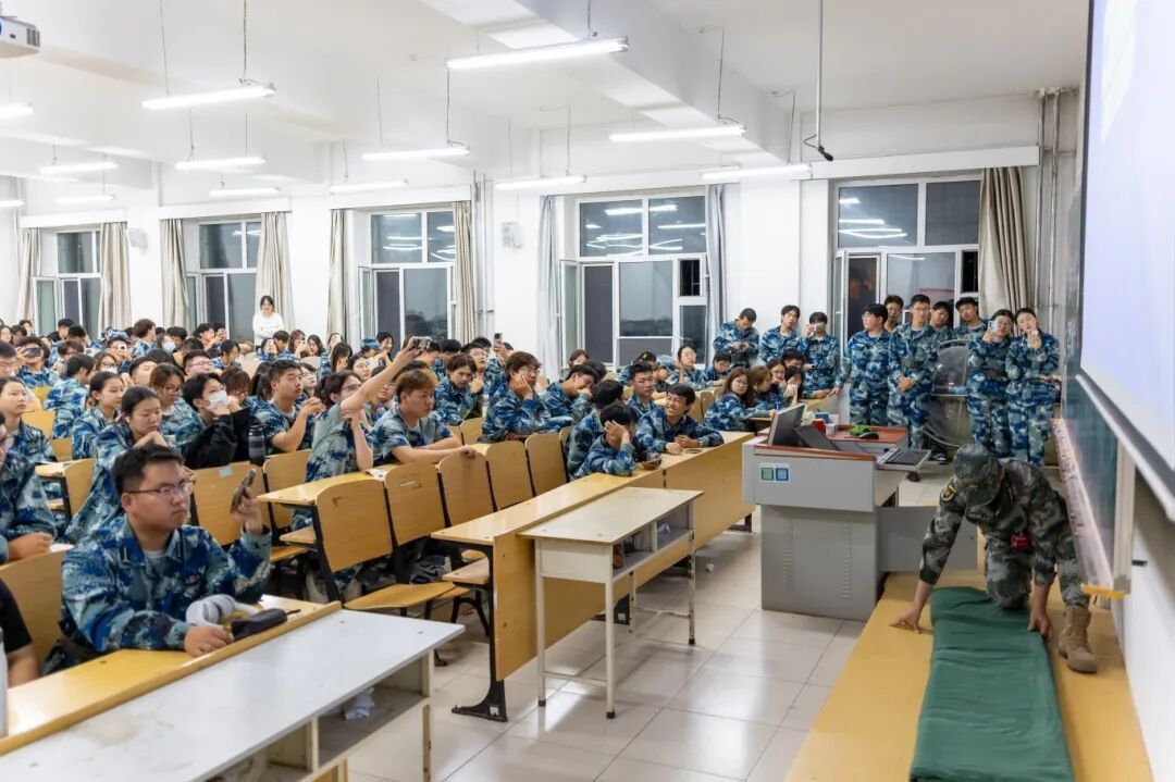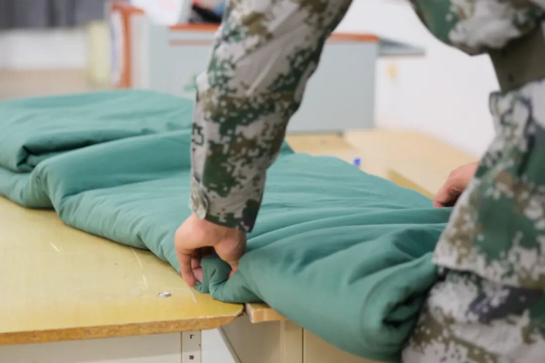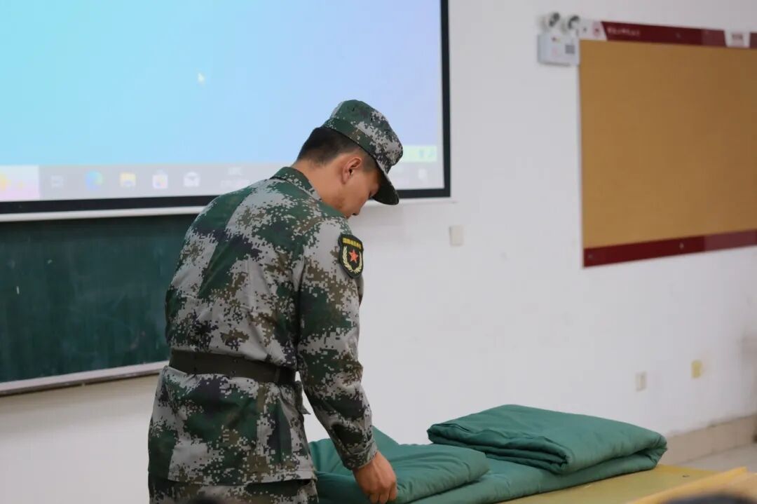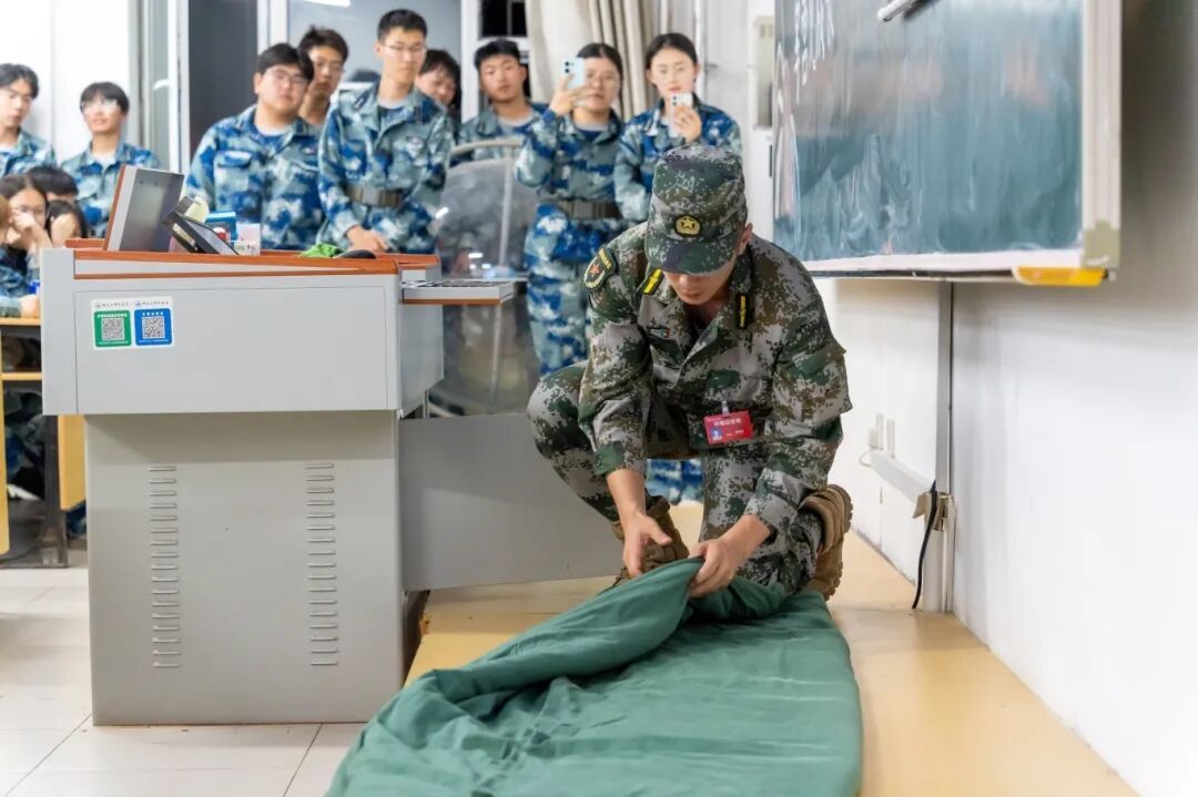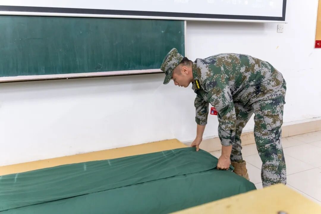 参训新生全程认真观察、细致记录,深入领会“三分叠、七分修”的内在要义,在教官的耐心指导下反复练习、调整改进,逐步掌握内务整理的标准与技巧。