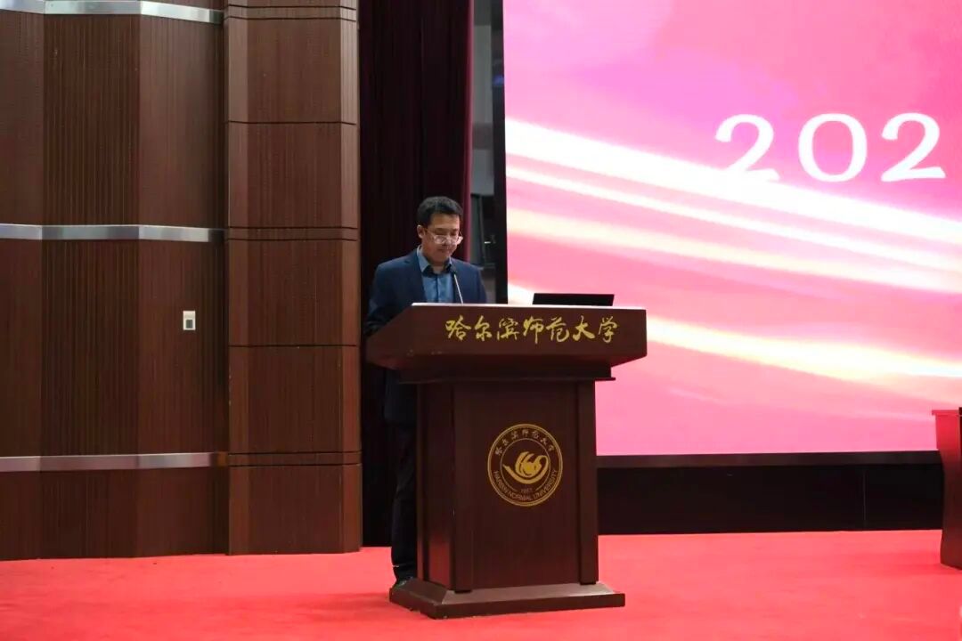 秋风送爽启新程,扬帆远航谱华章。为贯彻落实《哈尔滨师范大学大学生思想政治教育“112349”工作模式实施方案》,按照学校关于新生入学教育的工作要求,9月19日下午,地理科学学院2025级新生开学典礼在科学会堂隆重举行。地理科学学院党委书记张立辉、院长张冬有、党委副书记代起君、副院长张玉红、学工办主任宋歌、办公室主任胡绍财、地理信息科学系主任齐少群、院工会副主席兼本科教学秘书马玉妍以及三办全体行政人员、2025级本硕博全体新生参加典礼。典礼由党委副书记代起君主持。