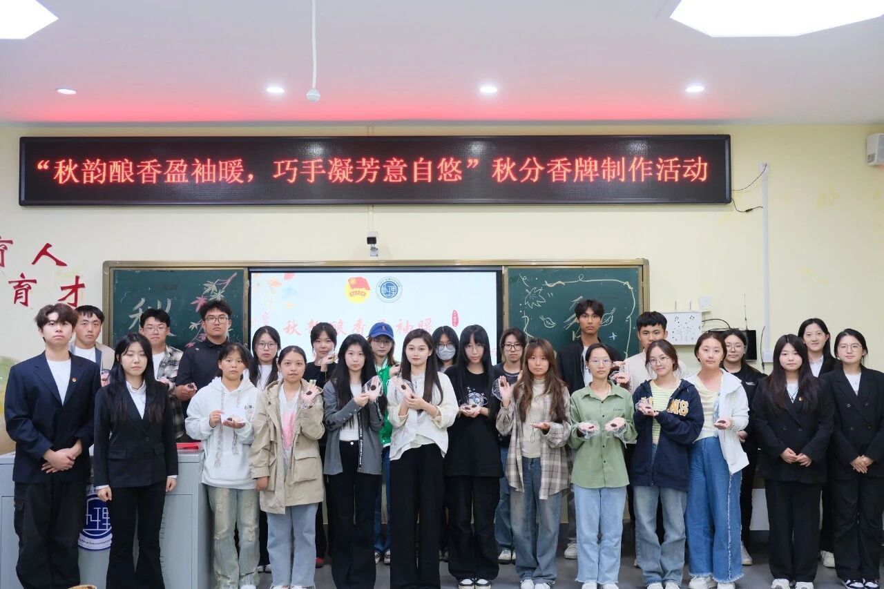 为深入贯彻党的二十大及二十届二中、三中全会精神,全面落实习近平总书记关于弘扬中华优秀传统文化的重要指示精神,进一步丰富我院青年学子的精神文化生活,9月23日秋分当天,学院团委宣传部于理工三215室开展“秋韵酿香盈袖暖,巧手凝芳意自悠”秋分主题香牌制作活动。学院团委指导教师、2025级辅导员金宇茜与各年级学生代表共同参与活动,以巧手制香牌、以雅韵品秋意,在沉浸式体验中感知传统节气的独特内涵与文化魅力。