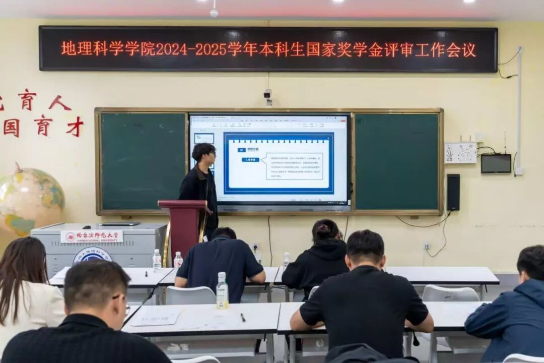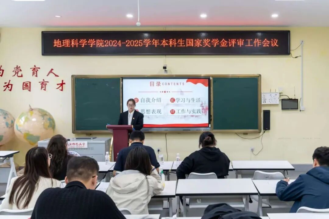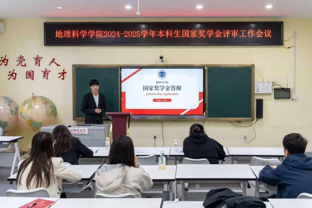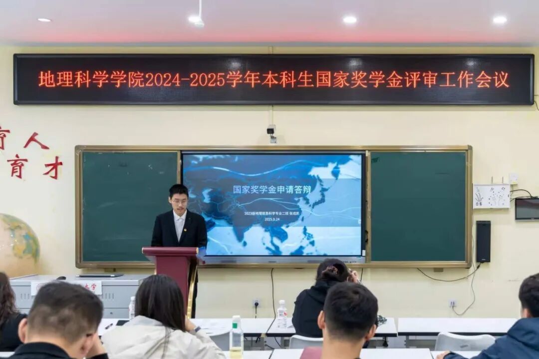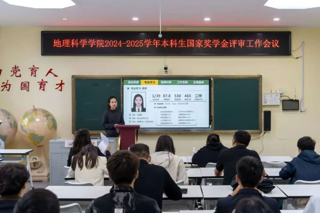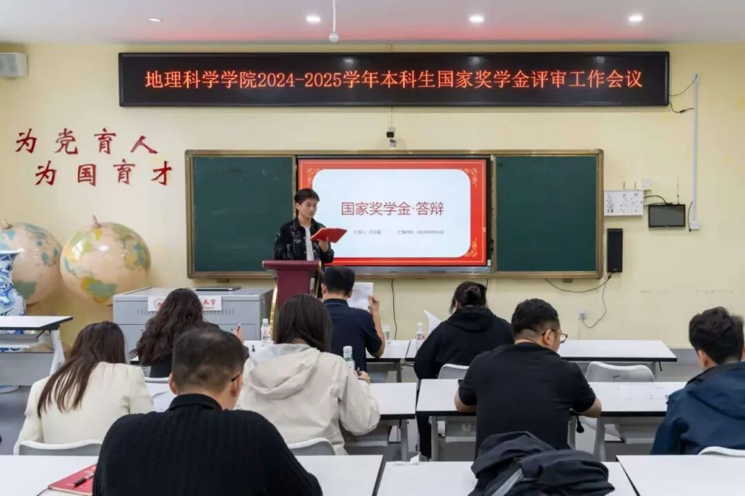 近日,根据学校《关于做好2025年本科生国家奖学金评审工作的通知》要求,地理科学学院高度重视、严密组织开展评审工作,成立由学院党委副书记、副院长担任组长,学工办主任担任副组长,全体辅导员担任组员的评审工作领导小组,严格按照评选条件和工作程序对参评学生进行审查,进入评审答辩推荐环节。