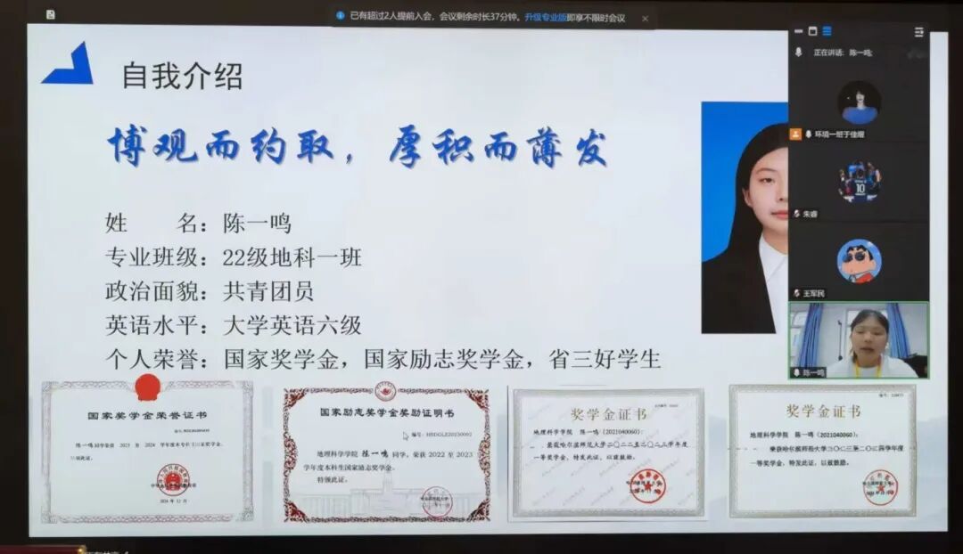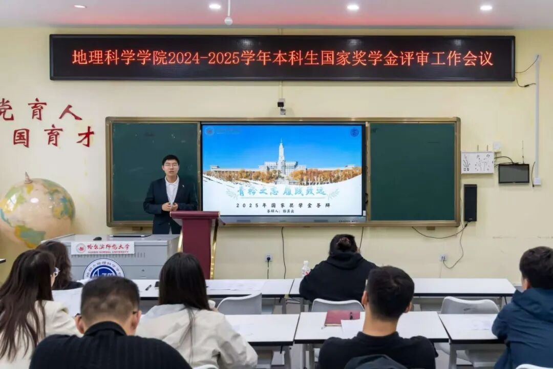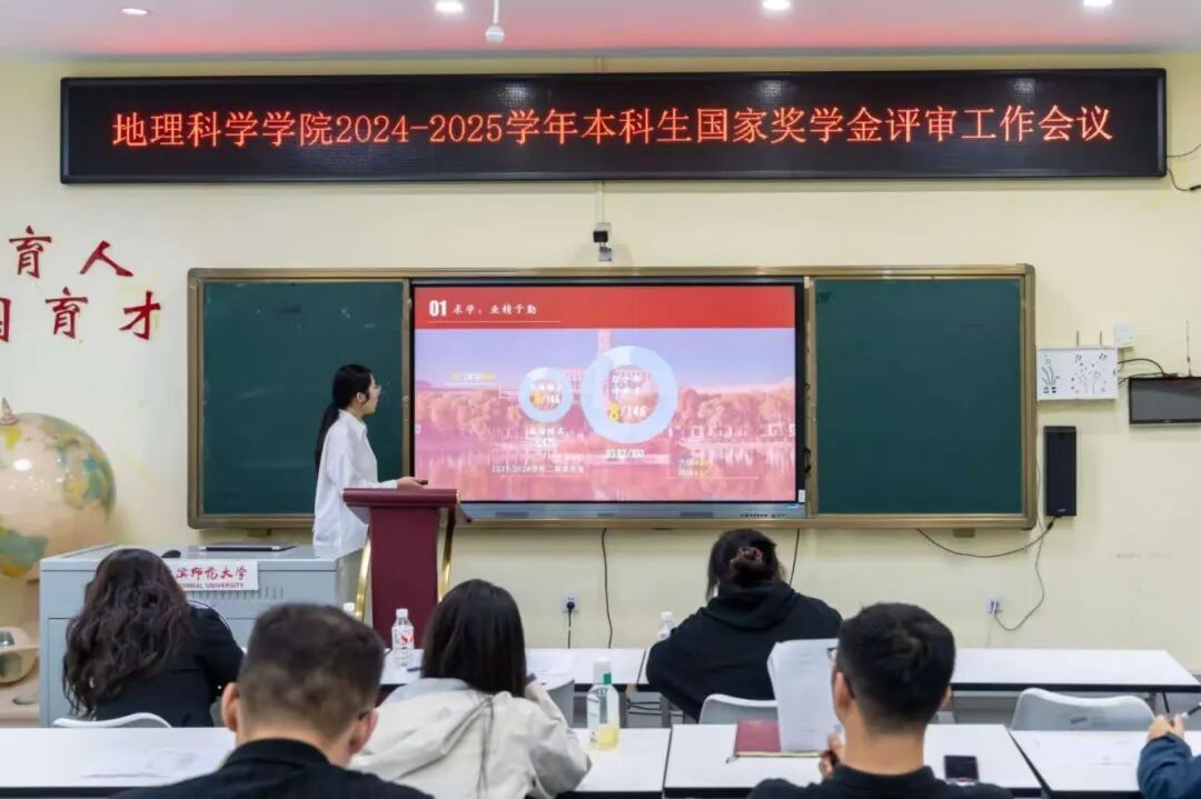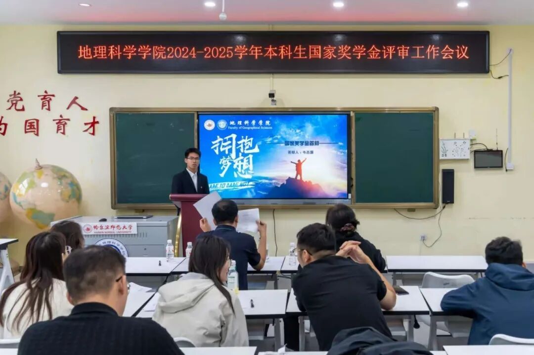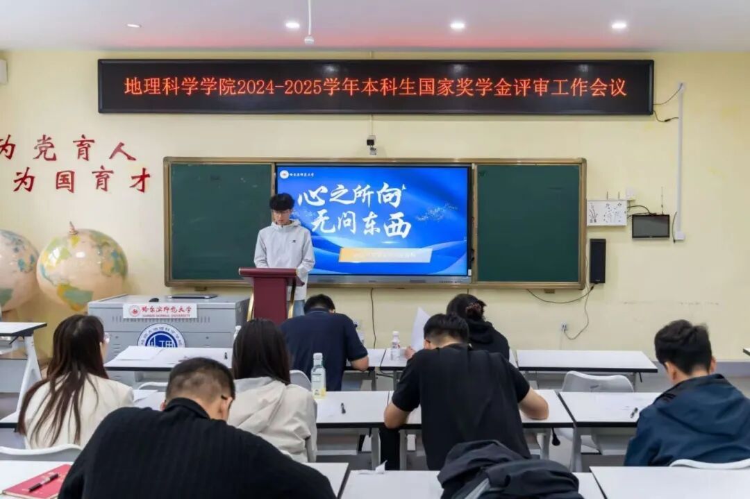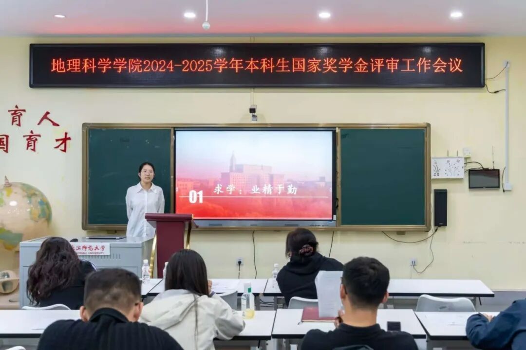 近日,根据学校《关于做好2025年本科生国家奖学金评审工作的通知》要求,地理科学学院高度重视、严密组织开展评审工作,成立由学院党委副书记、副院长担任组长,学工办主任担任副组长,全体辅导员担任组员的评审工作领导小组,严格按照评选条件和工作程序对参评学生进行审查,进入评审答辩推荐环节。