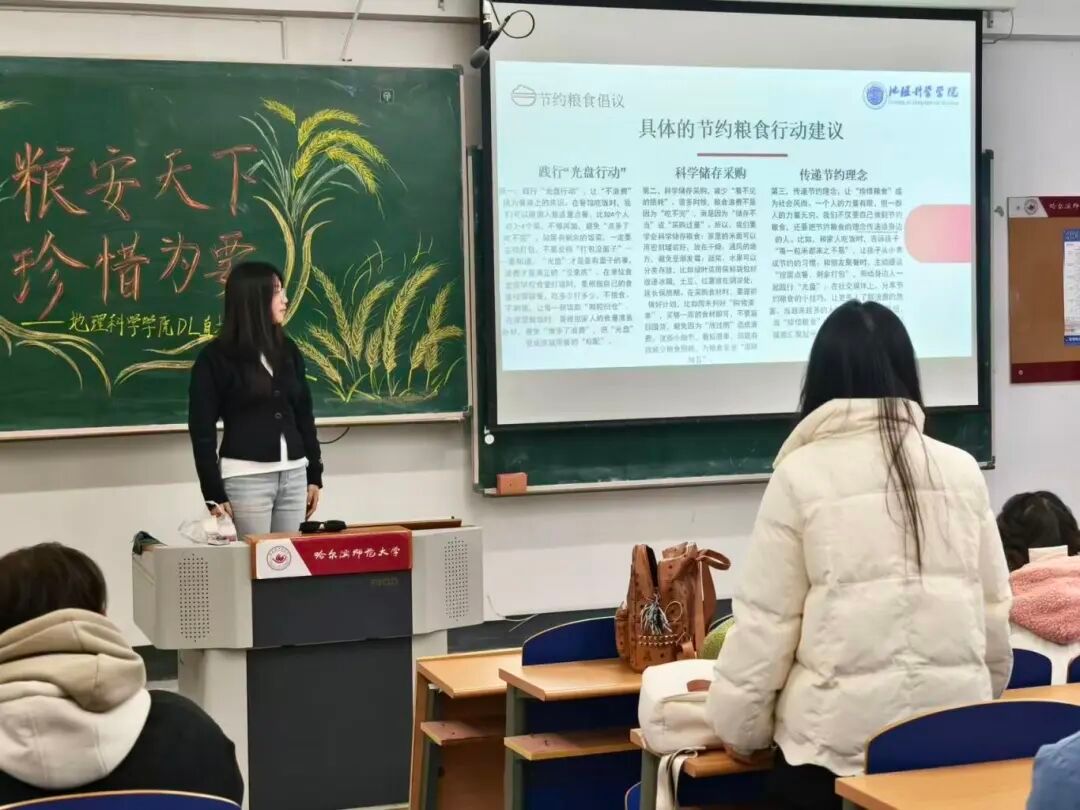为深入贯彻党的二十届三中全会关于“保障粮食安全,弘扬勤俭节约传统”的部署要求,学习贯彻习近平总书记“厉行节约,反对浪费”的重要指示精神,在第45个“世界粮食日”到来之际,地理科学学院团委联合学院DL直播团,于2025年10月16日举办“粮安天下,珍惜为要”主题宣讲活动,旨在引导青年学子树立节粮爱粮意识,厚植勤俭节约的传统美德,筑牢粮食安全的思想根基。