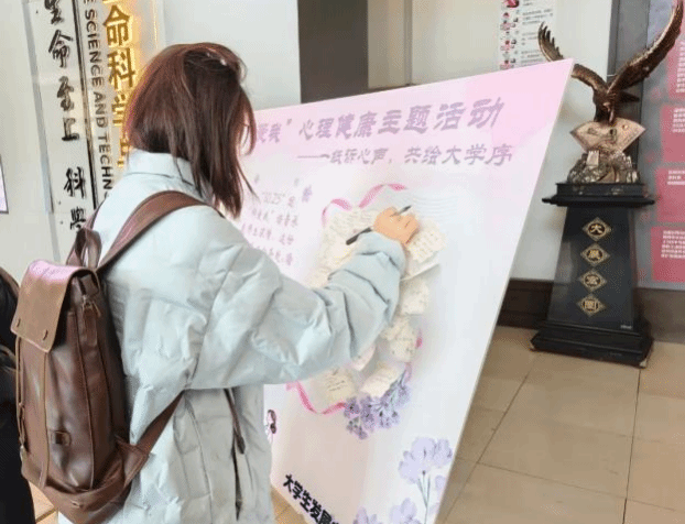为打破师生单向交流壁垒、搭建双向沟通桥梁,10月25日,地理科学学院大学生发展中心心理部以“10.25师爱我”为契机,精心开展“一纸诉心声,共绘大学序”主题活动。10.25“师爱我”聚焦“教师关爱”与“学生成长”双向联结,通过情感表达、行动实践与价值传递,让师生在互动中深化理解,让师爱可感、可见、可传承。活动通过书写与展示心愿祝福的形式,传递师生真挚的心意,接收温暖的情感,直观触摸彼此的期待与关怀。